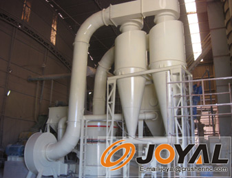 充分研磨后的物料,经收尘器收集,用空气输送斜槽、提升机等输送设备送入成品库中储存。